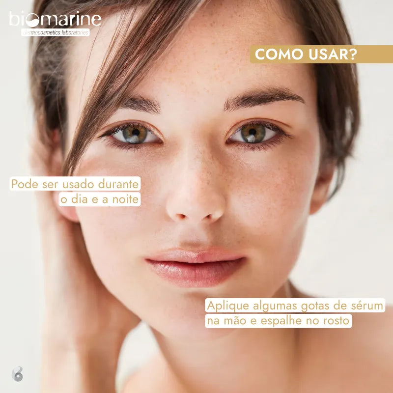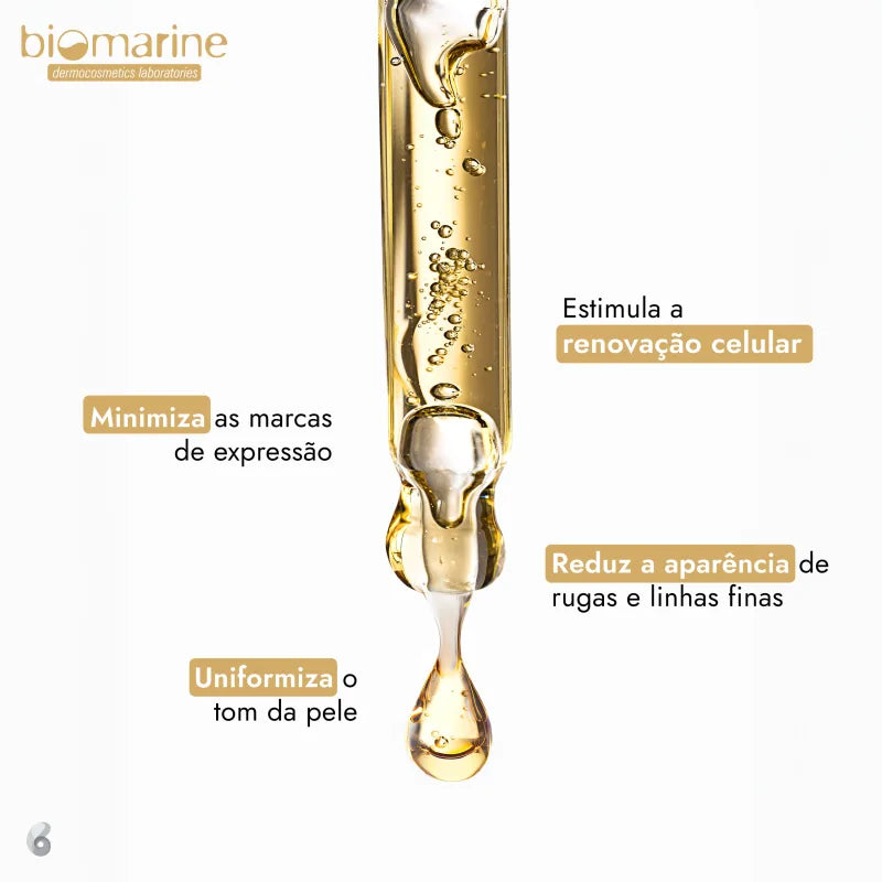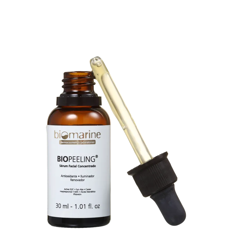 Sérum Redutor de Linhas Uniformizador para todos os tipos de pele. Biomarine Biopeeling Sérum Facial Concentrado reduz a aparência de rugas, linhas finas e manchas. Além disso, aumenta a firmeza e elasticidade da pele.
