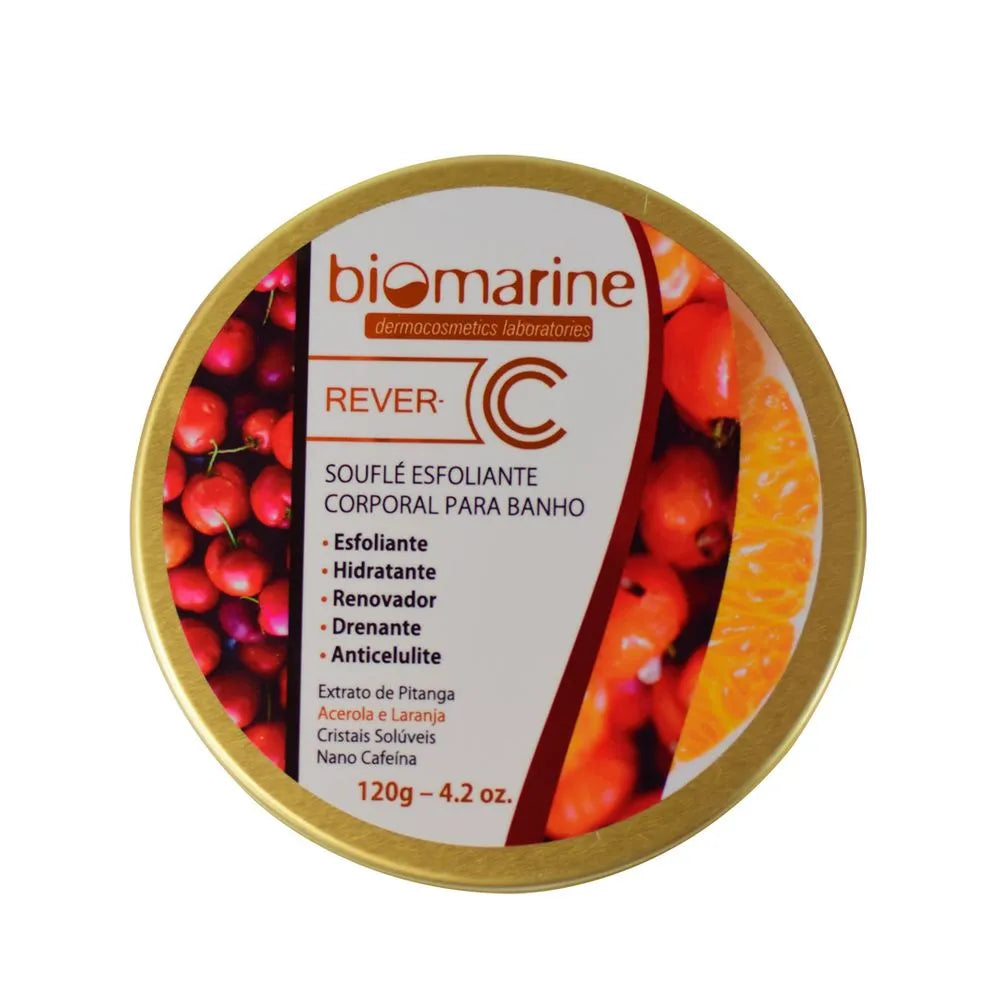 Biomarine Rever C Soufle Esfoliante Corporal para Banho contém ativos poderosos que reduzem a aspereza da pele, ao mesmo tempo em que perfuma e hidrata.