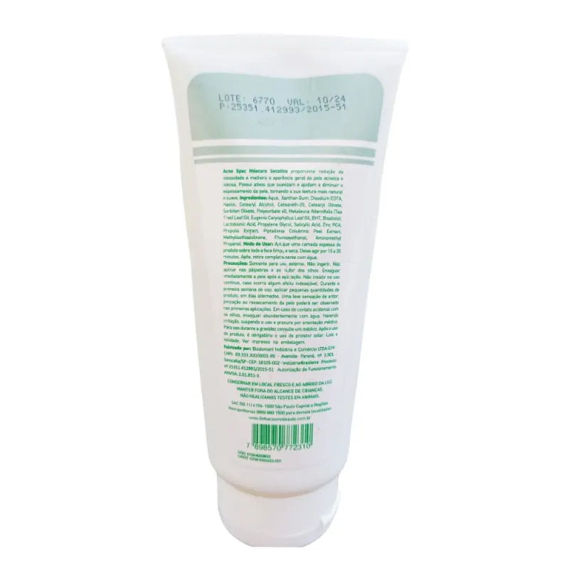 Máscara secativa. Cosmobeauty Acne Spec proporciona redução da oleosidade e melhora aparência geral da pele acneica e oleosa.