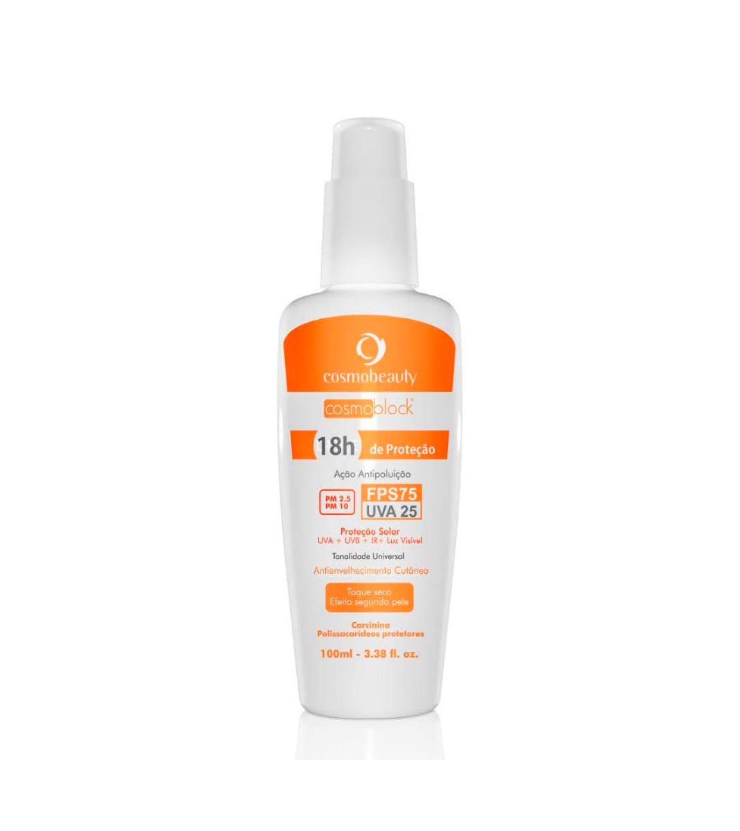 Protetor solar. Cosmobeauty Cosmoblock UV PROTECT FPS 75 18 hs protege e proporciona melhor tonificação e firmeza, com ação antioxidante.